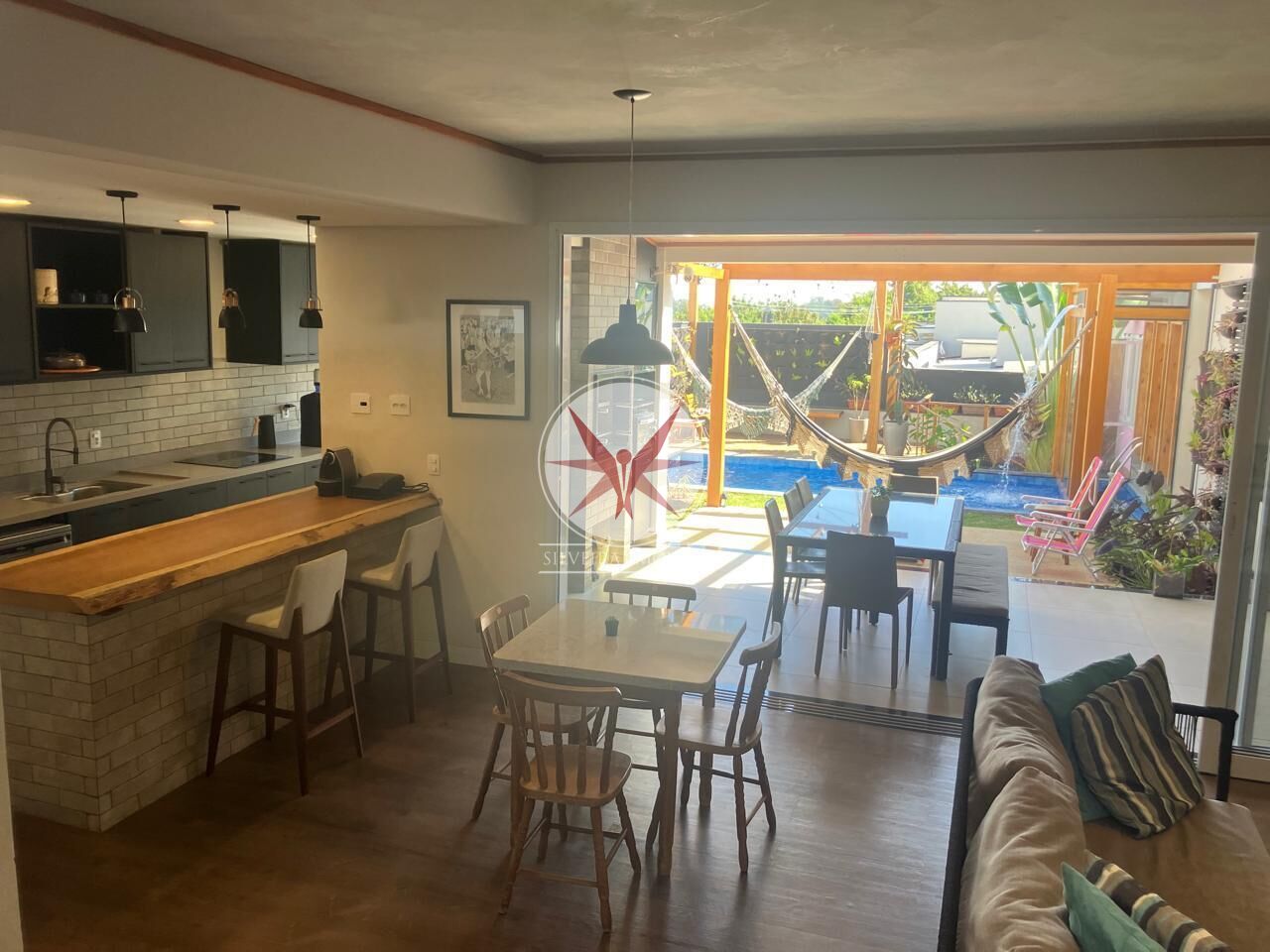 e banco, integrada à piscina por uma bay-window, lavabo com armário embutido,