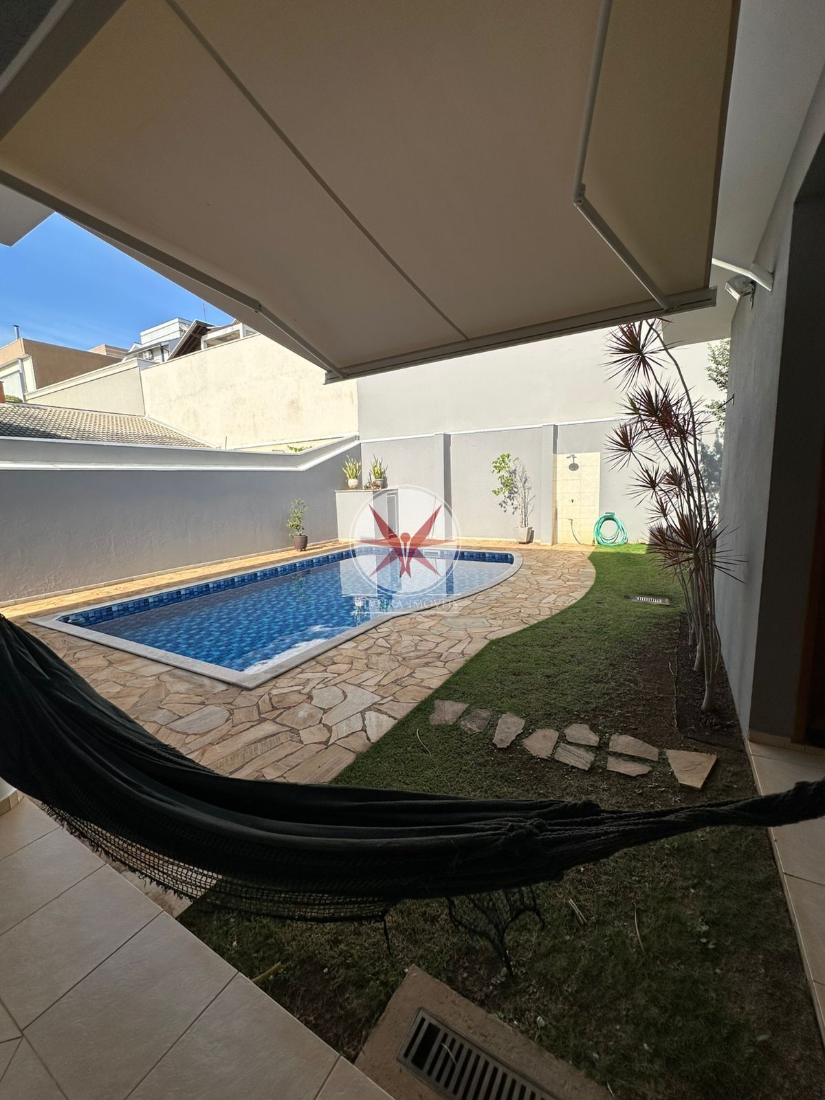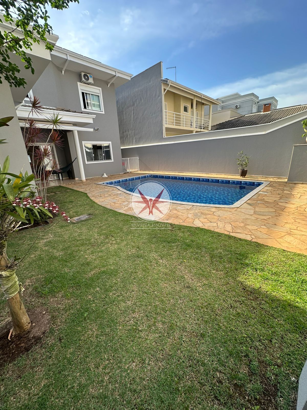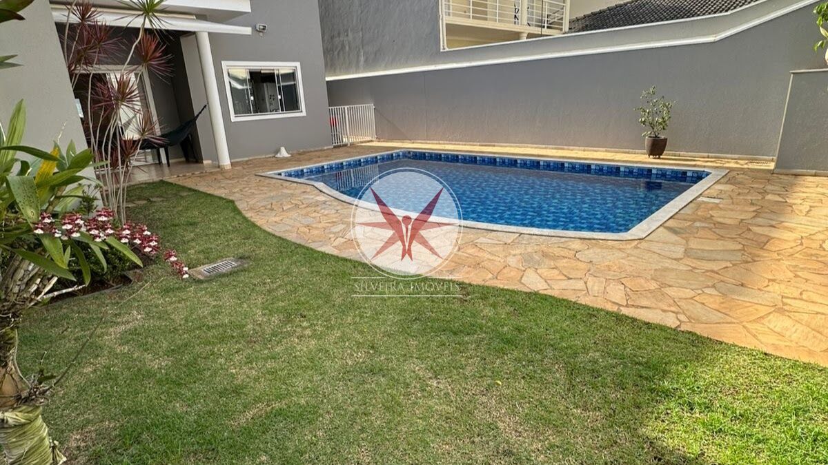 Pavimento Inferior: sala 2 ambientes, quarto de hóspedes ou escritório, banheiro/lavabo, cozinha com planejados, lavanderia, churrasqueira, banheiro da piscina, escritório, piscina espetacular, área de sol, grama no quintal, a casa possui 2 corredores.